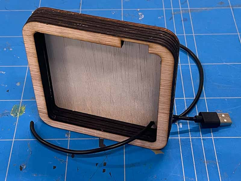 - Knip je USB-kabel op lengte en voer hem door het gat in de achterplaat. Zorg dat de USB-stekker aan de buitenkant zit.