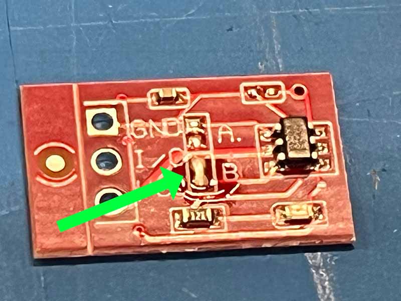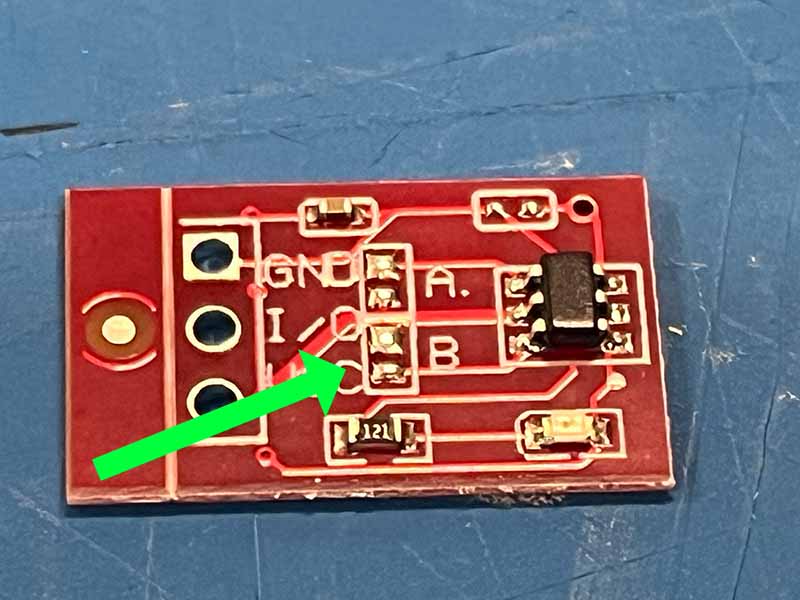 - Gebruik een beetje soldeer om de pads gemarkeerd met B te overbruggen.