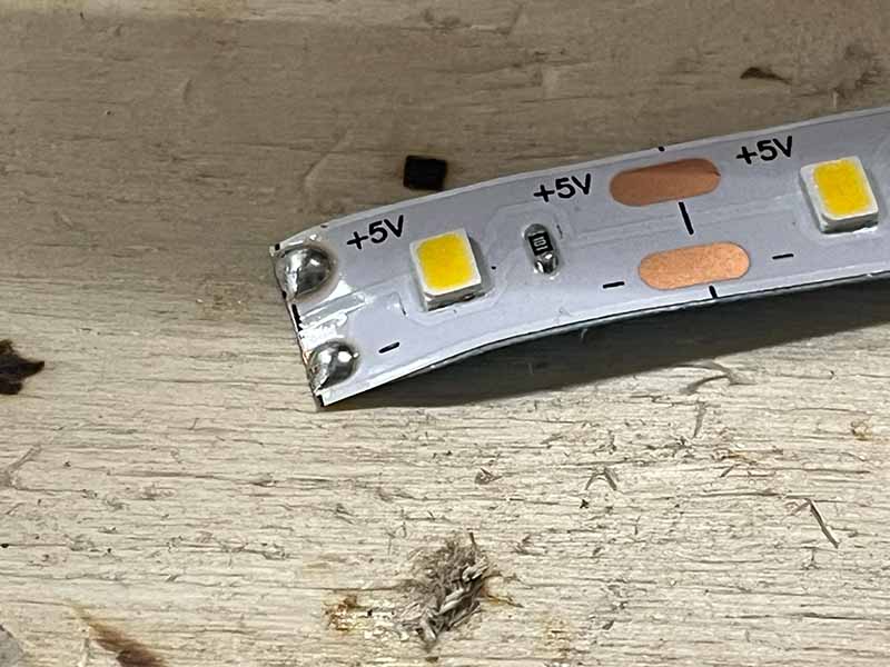 - Tel 23 leds op de strip en knip deze waar aangegeven.