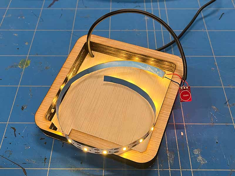 - Test het. Sluit de USB-kabel aan op een voeding. Een enkele aanraking zou de LED-strip aan en uit moeten schakelen.