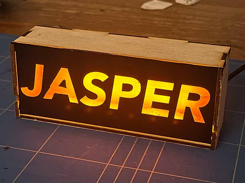 - Gebruik de lasersnijder om de houten en plexiglas onderdelen van het doosje uit te snijden.