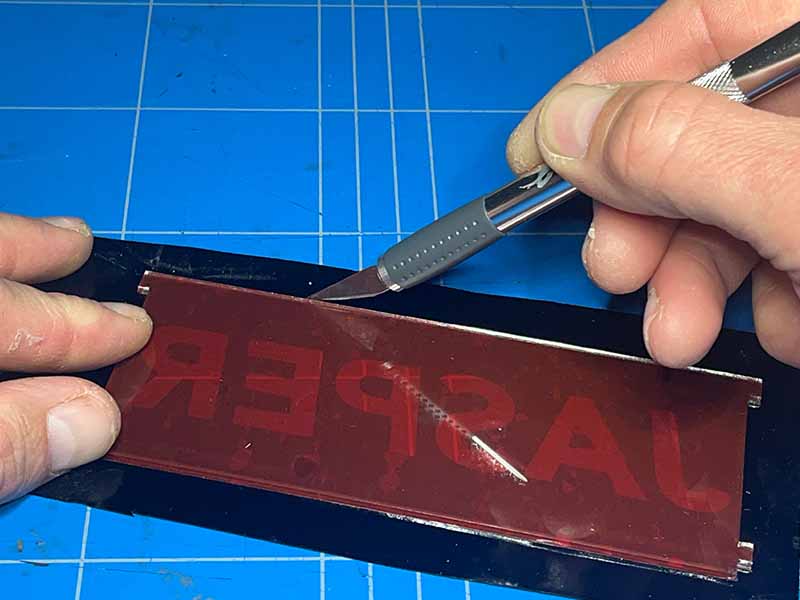 - Gebruik een hobbymes om de randen van het vinyl gelijk te snijden met het plexiglas.