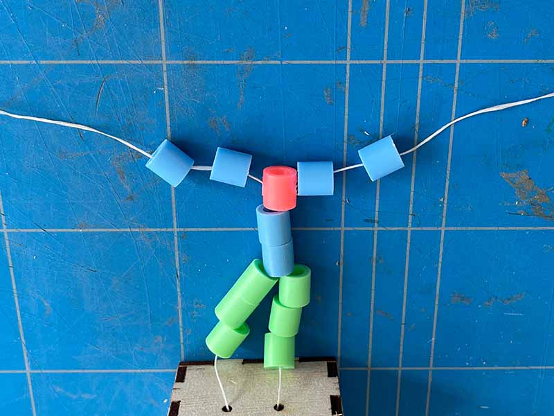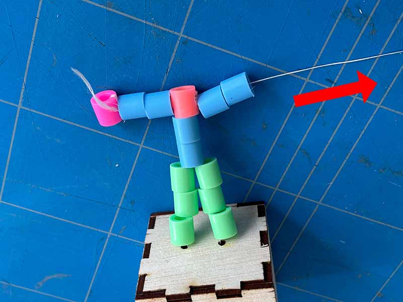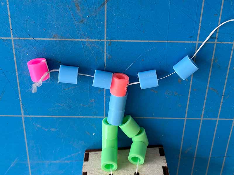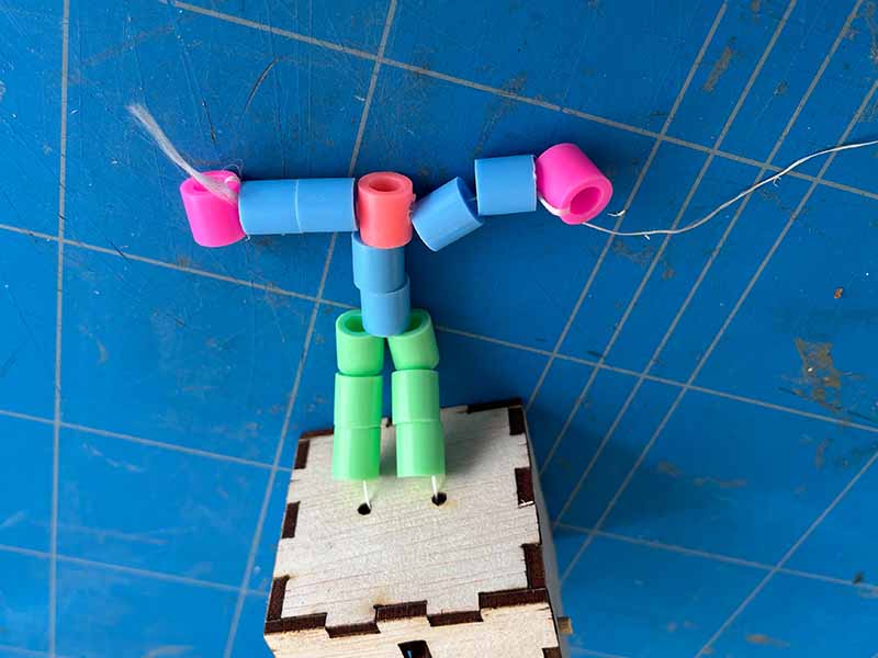 - Knoop aan een kant het flosdraad aan de 'hand' kraal vast.