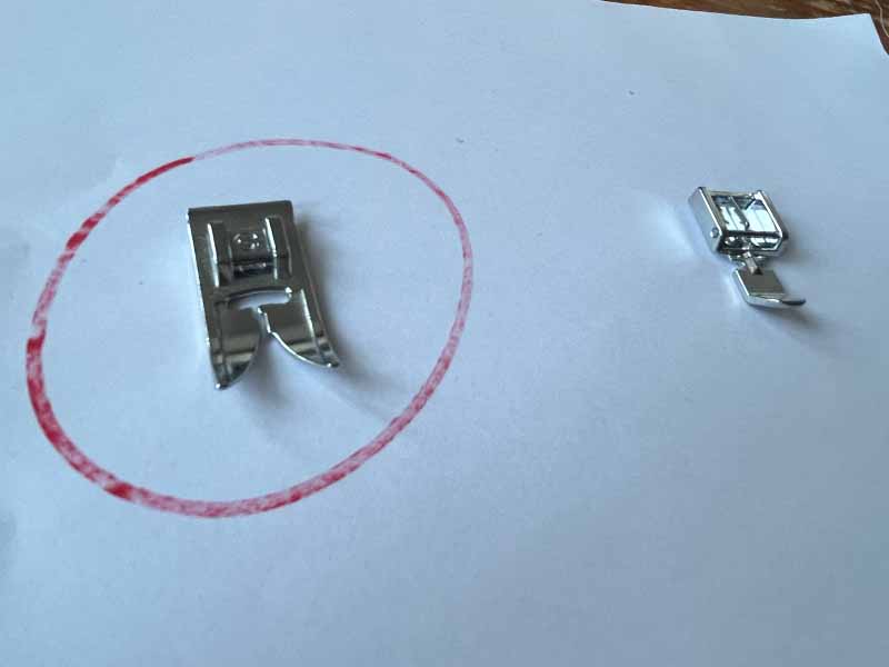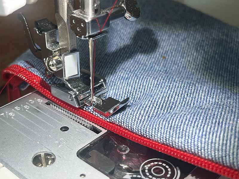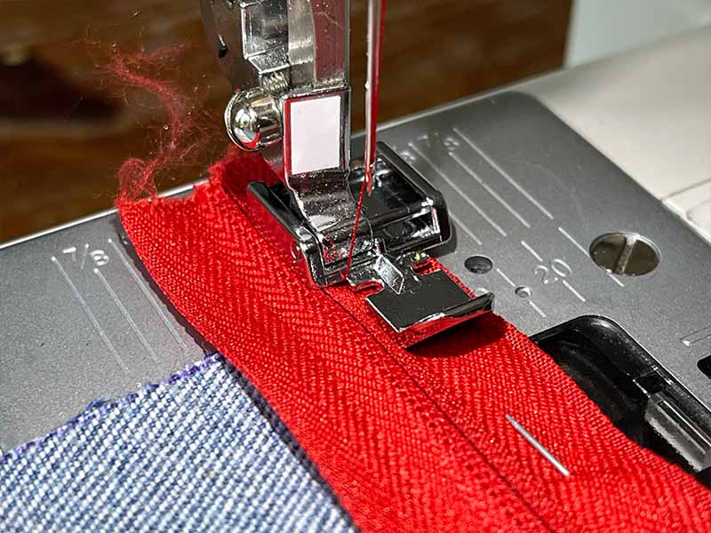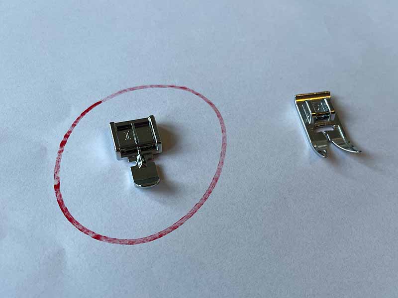 • Als je naaimachine een ritsvoet heeft, gebruik die dan. Zo niet, dan kun je een gewone voet gebruiken.