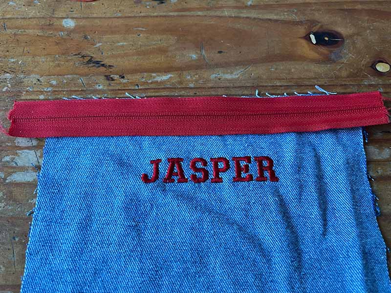 • Naai de andere kant van de rits vast.