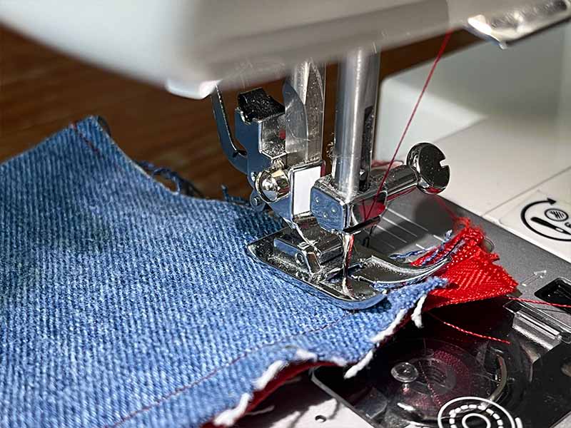 • Als je een ritsvoet hebt gebruikt, is het nu tijd om terug te schakelen naar de gewone voet.