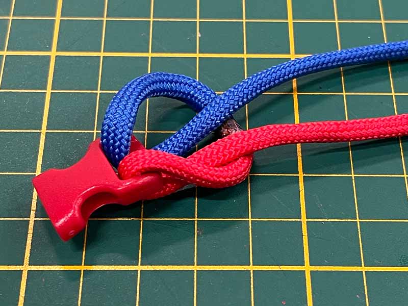- Als je geen knopen meer kunt maken, knip je het overtollige touw af.