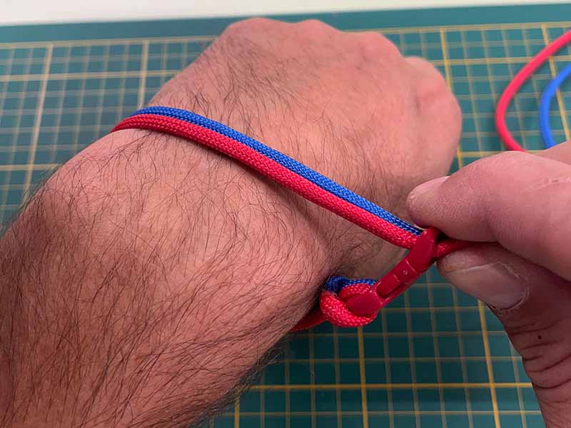 - Meet het touw af om je pols. Zorg dat je wat speling hebt, want de armband wordt dikker.