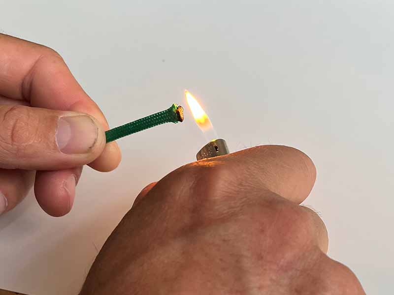 - Gebruik de aansteker om de uiteinden lichtjes te smelten zodat het touw niet rafelt.