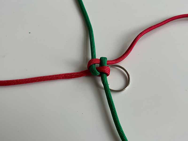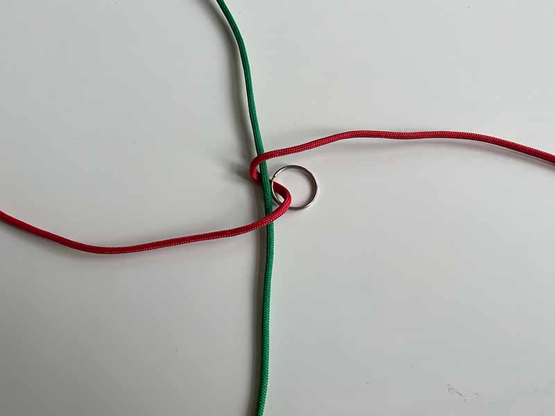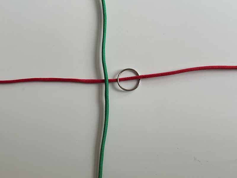 - Doe de sleutelring om het horizontale stuk touw. Plaats het dicht bij het midden van het touw.