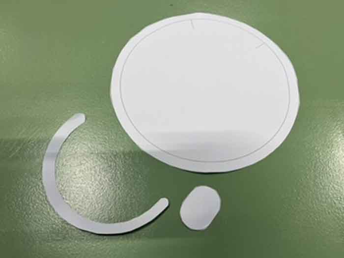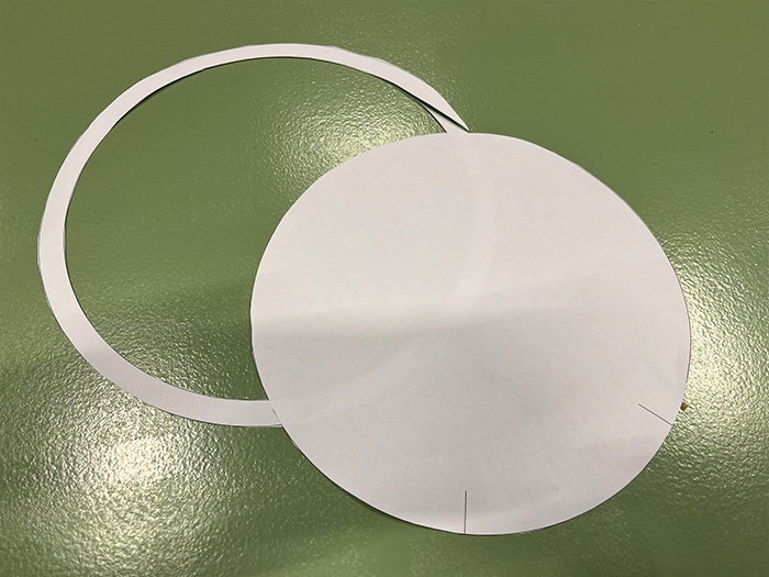 - Knip de buitenste ring van het grote cirkelsjabloon af.