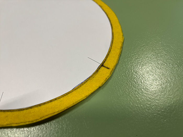 - Trek de kleinere cirkel over op het vilt. Zet ook de start en stop markeringen op het vilt.