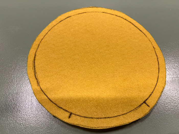 - Plaats het kleinere sjabloon bovenop een van de vilten cirkels die je net hebt uitgeknipt.