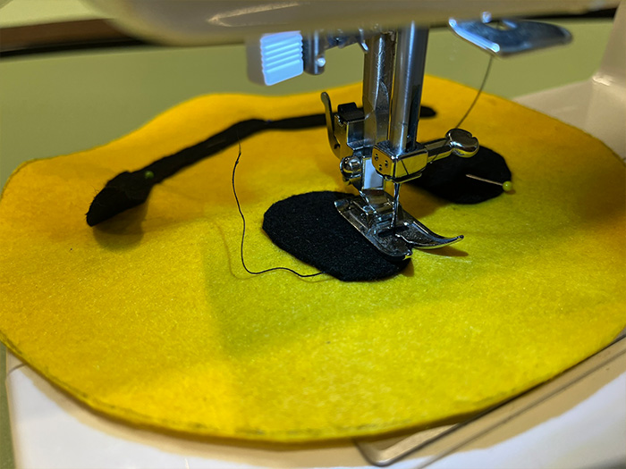 - Gebruik de naaimachine om de ogen vast te naaien.