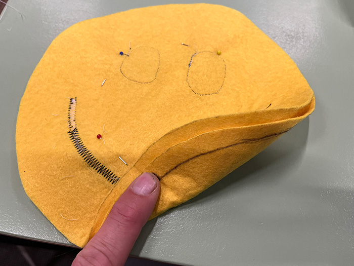 - Plaats de ogen en mond op het vilt stuk zonder de lijn die je in de vorige stap hebt getekend.