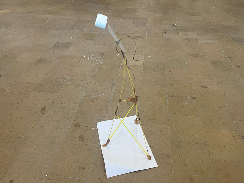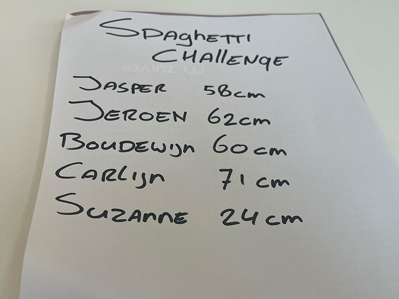 - Het doel van deze uitdaging is om de marshmallow zo hoog mogelijk van de tafel. De toren moet zelfstandig minstens 30 seconden blijven staan zonder hulp.